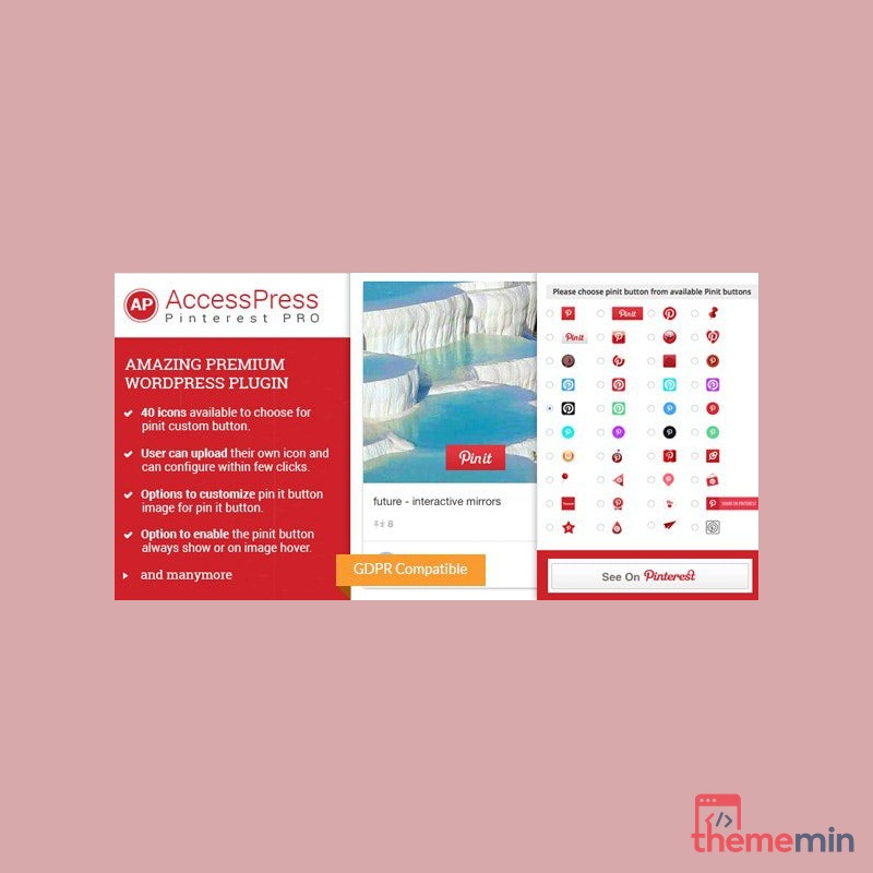 AccessPress Pinterest Pro is a premium WordPress plugin that helps you integrate Pinterest into your website. Easily display Pinterest feeds, save buttons, and sharing options, attracting traffic from Pinterest and boosting your content’s visibility.