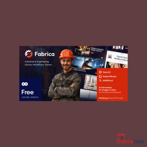 Fabrica is a professional WordPress Theme specifically designed for industrial, engineering, and factory businesses. With robust layouts, flexible customization options, and optimized performance, this Theme WordPress helps your company project a professional and trustworthy image. Establish a strong online presence for your industry!