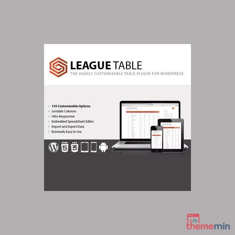 League Table is a powerful WordPress plugin that helps you create and manage professional sports league tables. Display results, scores, team or individual statistics clearly and engagingly, ideal for leagues, clubs, or sports blogs.