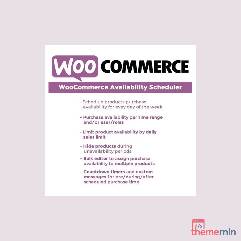 Woocommerce Availability Scheduler: WooCommerce plugin for scheduling product availability, helping manage sales times and bookings.