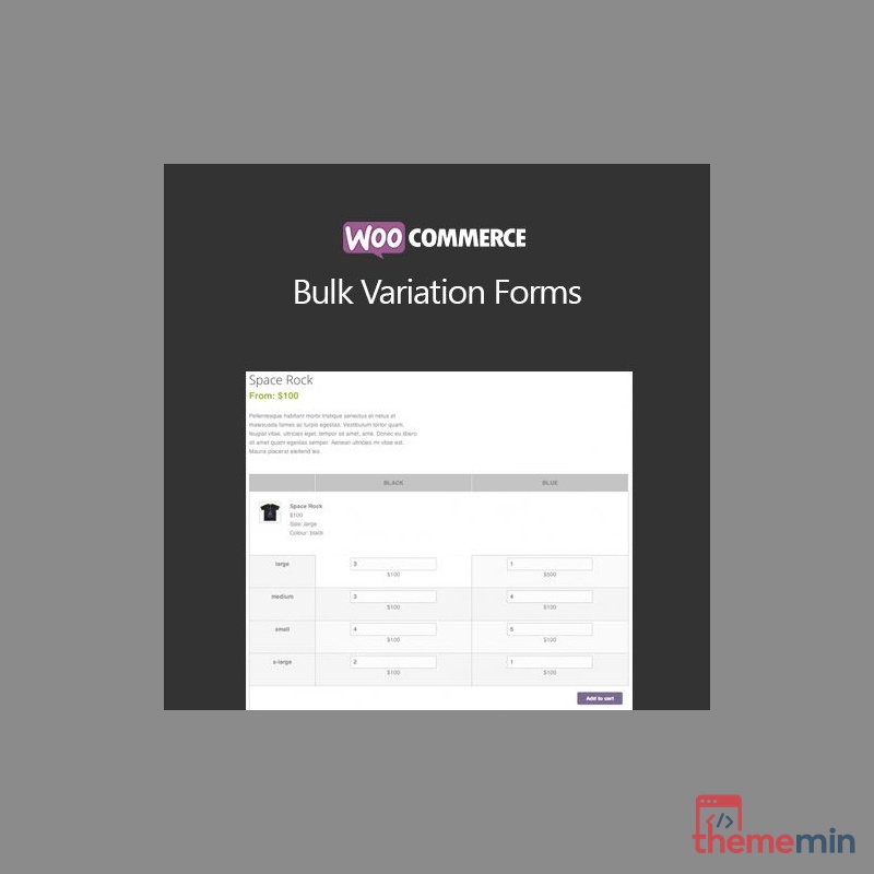 Woocommerce Bulk Variations: WooCommerce plugin allowing bulk management and editing of product variations, saving time.